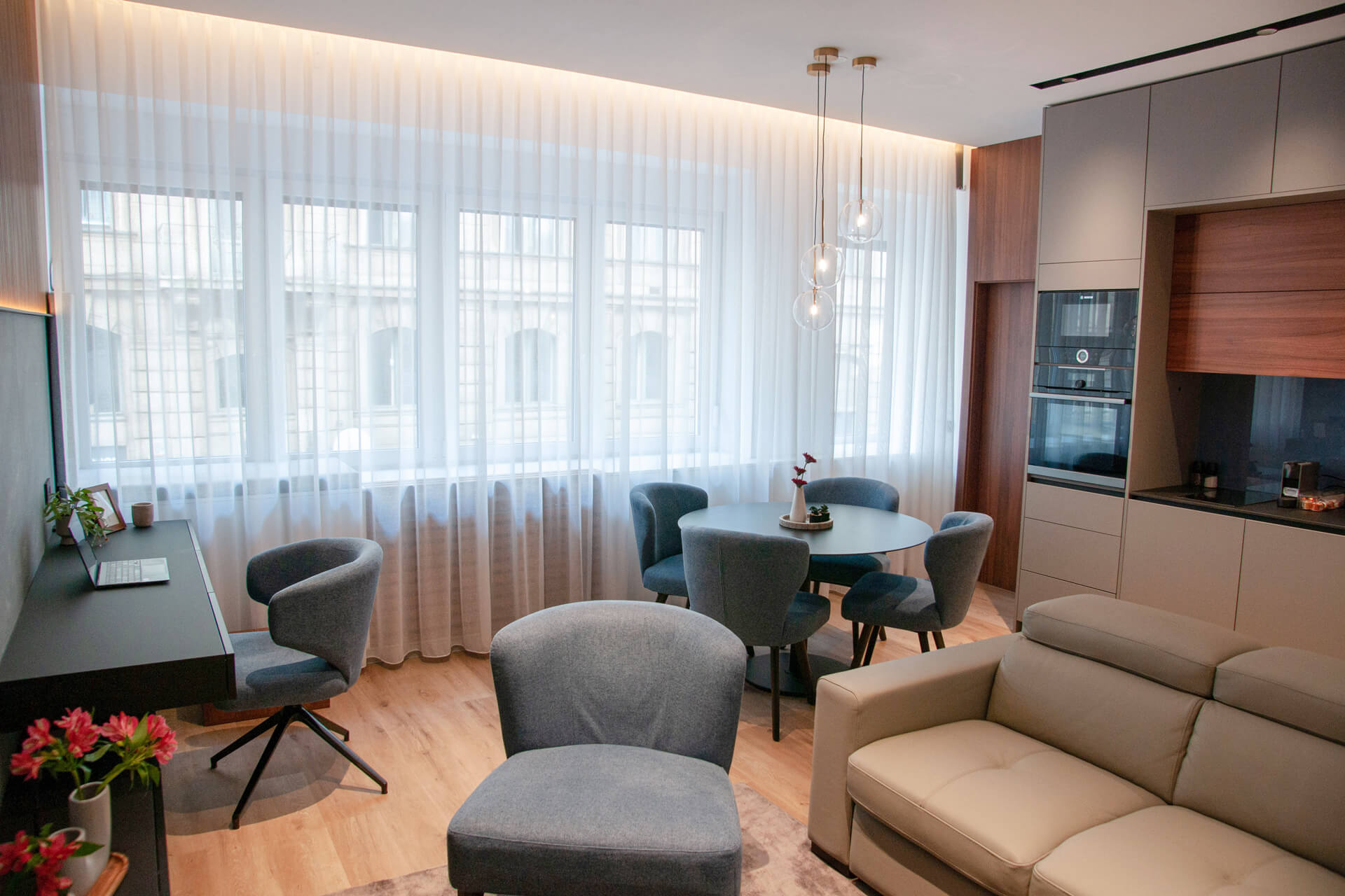 Experience everyday luxury with modern amenities — from a fully equipped kitchen and elegant walk-in showers to air-conditioned comfort and high-speed Wi-Fi. Everything you need for a seamless stay in the heart of Zagreb.
