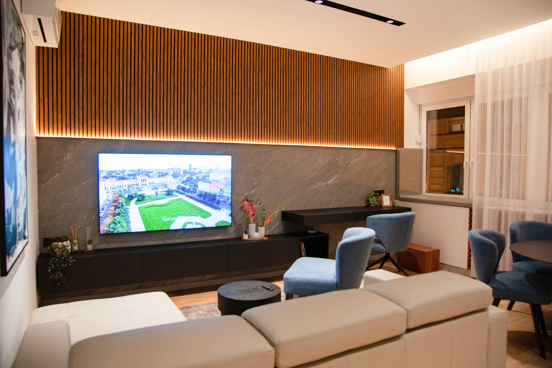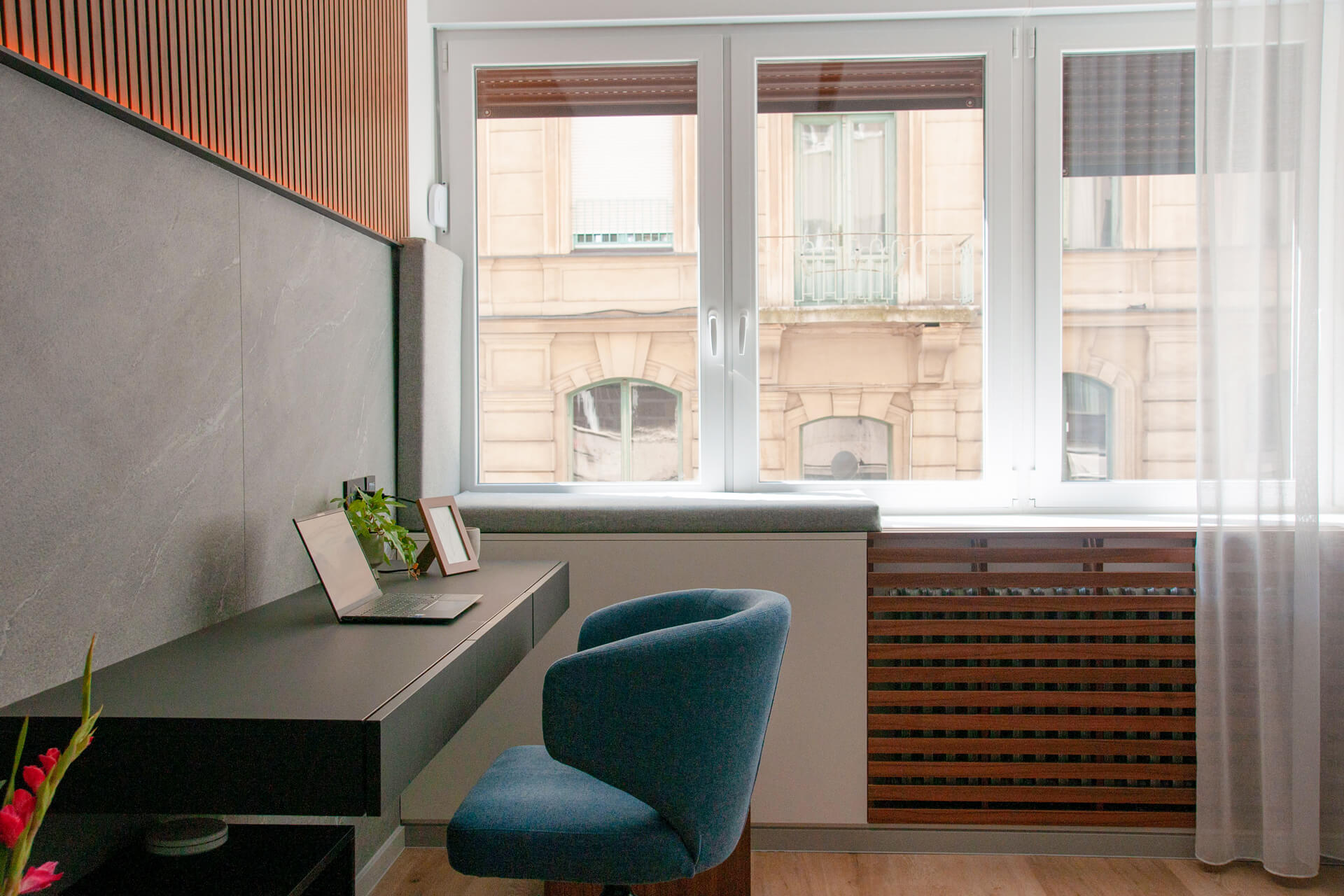 Located in the heart of Zagreb, Makar42 is a modern and welcoming apartment made for longer stays and city getaways. Perfect for up to four guests, it features two elegant bedrooms with smart TVs, walk-in showers, and cozy beds. The fully equipped kitchen and workspace make it ideal for both relaxation and remote work. A charming window nook overlooking Zagreb’s liveliest street invites you to unwind, read, or enjoy your morning coffee. Blending comfort, style, and warmth, Makar42 lets you experience Zagreb at its best.